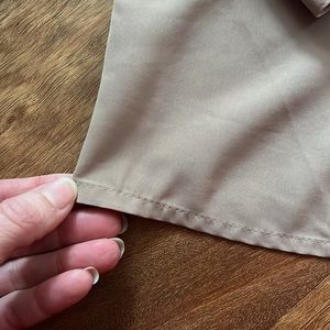 This blouse is an excellent condition! Absolutely love the elegance of this top. The color is great for any outfit. Can wear the collar up tight or take away the button and wear it open. As shown in pictures. This blouse has darts in front and back. Can adjust the sleeve at wrist to two different comfort levels. approximate measurements are 21 1/2 inches pit to pit and 28 inches from shoulder to bottom of top. This is a great blouse that feels like silk and does not wrinkle. As always smoke and pet free home. Same day shipping! Willing to negotiate prices.