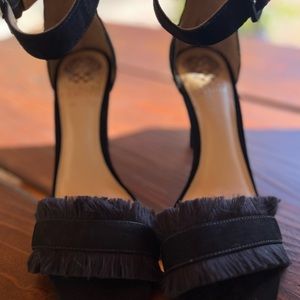 New Vince Camuto Black Fringe , Open Toe Heels,, So Pretty ! Size 8
