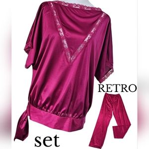 Retro 1980s 2 piece Pajama set Lace Detail Side Tie Top size M OUT OF THIS WORLD! fabulous co edition. Lace front is so subtly sexy! love that ... Soft