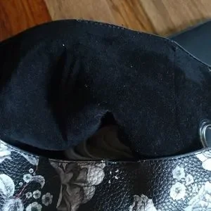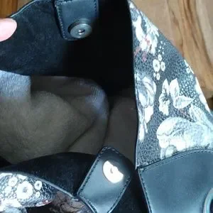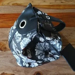 Designer bag with beautiful floral print; black/white/red; lightly used; quality faux leather; sits in a base 9.25" x 7"; Please message me with any questions; price negotiable; will discount if bundled. Thank you for shopping 🛍️ my closet.