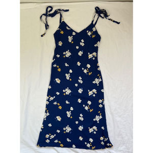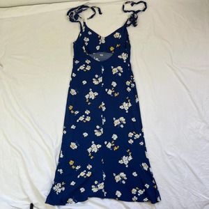 Reformation Floral Jade Tie Strap Midi Dress XS Blue 44"