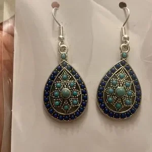 Sterling silver wire โ bohemian style tear drop โ earrings. Handmade. New.