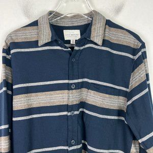 NWT Lucky Brand Striped Flannel Button Front Shirt Blue Size Small S NEW