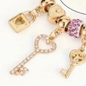 Golden Bracelet, Key Lock And Heart-Shaped Faux Diamond Pendant