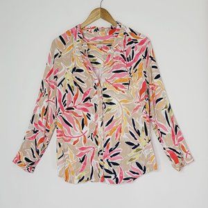Vintage Just Pour Moi Shirt Jacket Open Front Red Floral Plus Size Womens Business Career Collare Long Sleeve Mature Professional