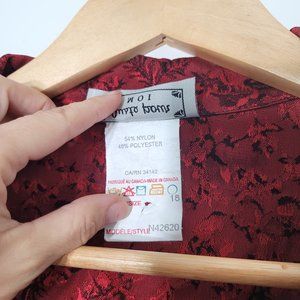 Vintage Shirt Jacket Open Front Red Blazer Floral Plus Size Womens 18