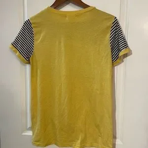 Pretty yellow top, some leopard print and some stripes, twist know front O