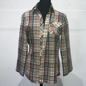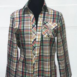 Vintage Koret Primary colored tartan Plaid button down shirt
