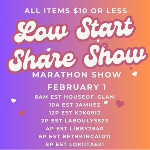 Please schedule your show, add this flyer to top of your tray and add flyers and a few items in of all hosts participating. This is $10 and lower start share marathon