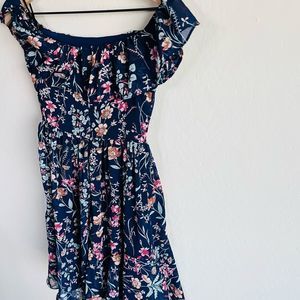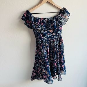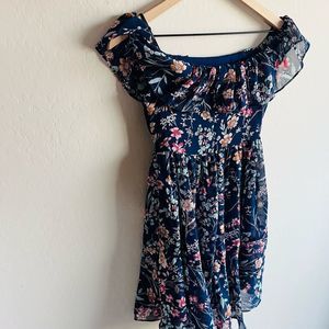 Lulus Women’s My Favorite Navy Floral Print Off The Shoulder Mini Dress Size XS