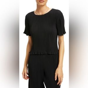 Plissé pleats add touchable texture to a lettuce edge T-shirt that's easy to style up or down, depending on your agenda.