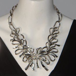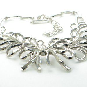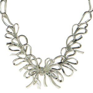 Oscar de la Renta Polished Silver Crystal Bow Necklace