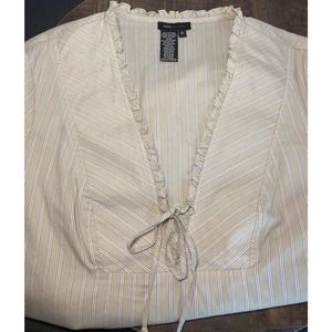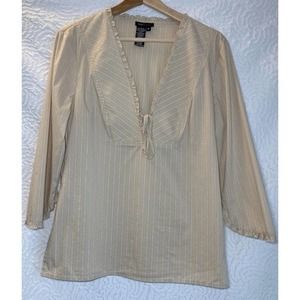 BCBG MaxAzria Womens Blouse Top Tan Stripes Ruffle Sleeve Edge Shirt Size 10