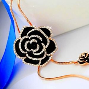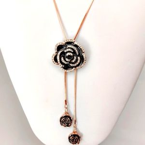 Black Rose Pendant Long Necklace for Women Trendy Fashion Jewelry