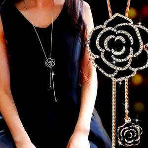 Material: Rhinestone,Alloy Approx Size:chain length:34.65 Inches rose:1.97*2.36in Weight:26g The pendant position can be adjusted to suit different styles !