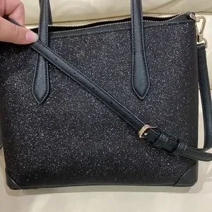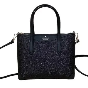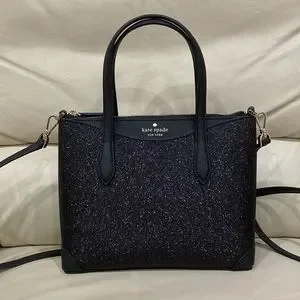 Kate Spade Black Glitter Sparkle Shimmy Fabric Satchel Purse Bag
