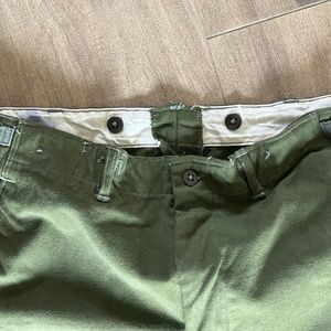 Description from website: The M-1951 field trousers as the name implies came about due to the vicious Winter fighting encountered in the 1950's during the Korean War. Designed to run large width ways so the soldier can wear arctic liners underneath (some have buttons inside the waist for attaching the M51 liner). Made from 18-oz wool with a nylon serge this material is tough & works great as a natural body heat regulator in both cold and warm weather. Equipped with all the usual bells & whistles - generous rear & slash pockets, adjustable waist tabs and fly zipper. Ideal for adding layers underneath during Winter, they sure don't make them like these anymore. Grab a pair of Korean War history today!