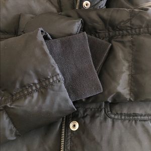 J.Crew down puffer jacket. Sherpa fleece lining, very warm & comfortable, not bulky, featuring detachable hood, 4 front pockets. Lightly used condition, sherpa fleece inside with additional warmth, no holes no rips no stains, measurements: bust 21 length 24. 1st photo for reference.