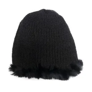 NWT Reversible Knit Beanie Genuine Fur Hat in Solid Black Overstock MSRP $68