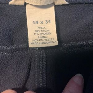 Lined pants in good condition. I am 5x4 and these were a little long— there’s one pant leg with some light fray. I had ACL surgery and gained weight so wore these for one season. See tag for more detail on style. Love these pants. I recommend for skiing on days when it’s not so cold. These pants have front, back and side zip pockets. They look almost black— pictured with the size 12x29 black pair so you can see difference.