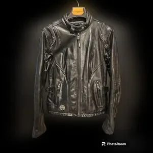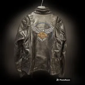 Coats like this are going for over 400.00 elsewhere! Harley-Davidson® Women's 115th Anniversary Limited Edition Leather Jacket. Midweight buffalo leather. Polyester mesh lining with 115th Anniversary jacquard tape. Two sleeve vents and vented action back with stretch panel for improved fit and comfort. Body armor pockets at elbows, shoulders, and back. Snap waist tabs and two back hip release zippers for adjustability. One zipper vertical interior pocket. 3M™ Scotchlite™ Reflective Material piping. Decorative perforated leather with contrasting navy underlay on sides. Contrasting stitching on sleeves, wind flap, and collar holder loop. 115th Anniversary hardware and studs. 115th Anniversary metal badge on front right hem. 115th Anniversary embroidered graphics and leather patch on back. A jacket so epic, it's been 115 years in the making. Worn a total of 3 times. PRICE IS NOT FIRM, MAKE AN OFFER!