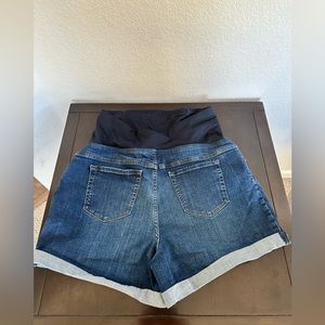 Excellent condition. Isabel Maternity dark wash over the belly midi short jean shorts size 14/32