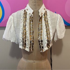 Supord Manage White Gold Beaded Bolero Cropped Jacket