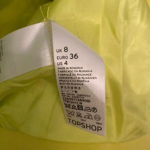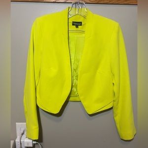 Size 4. Lined, 100% polyester. Beautiful muted neon yellow/green ✨ collarless crop blazer. Mine does not have tags attached, but included stock photos for accurate coloration.