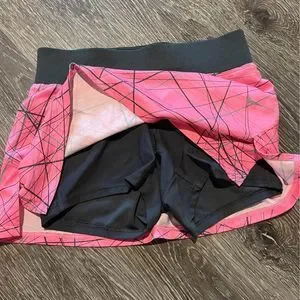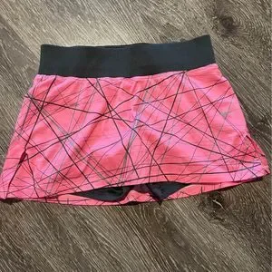 activewear, neon, hot pink, bright, vibrant, sports, skort, spandex, country club, grey gray charcoal patterned printed , mini skirt, gym, fitness, workout, running, jogging