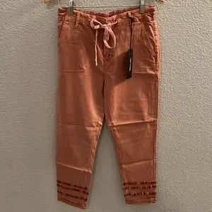 NWT Driftwood Mauve Embroidered Stitch Cuffed Leg Khaki Pants SZ M Drawstring