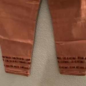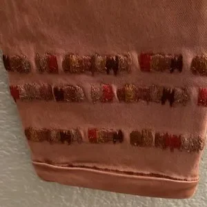 Elevate your wardrobe with these stylish Driftwood Khaki Pants, perfect for any occasion. The mauve pink color adds a touch of femininity while the decorative puff stitching detail and embroidered accents provide a unique flair. The elastic drawstring waist and cuffed leg make these pants comfortable and versatile, whether you're running errands or attending a party. Waist 28” Inseam 26”