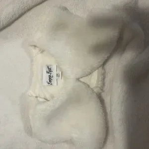 Sleveless dress with sleeveless coat. Cream color dress with gold color dots and cream color faux coat