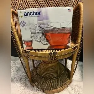 Vintage Anchor Hocking "Savanah" 18 piece Punch Bowl Set with Ladle
