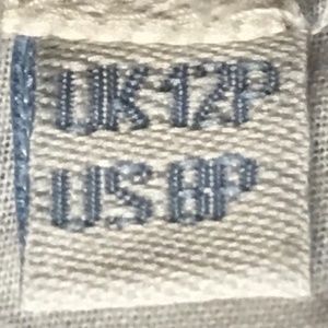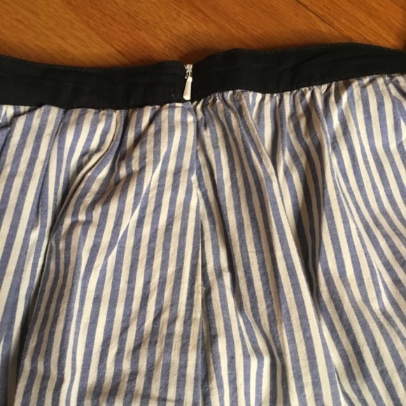 Boden embroidered floral print w/ blue and white pinstripe skirt