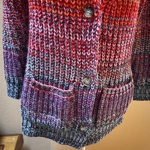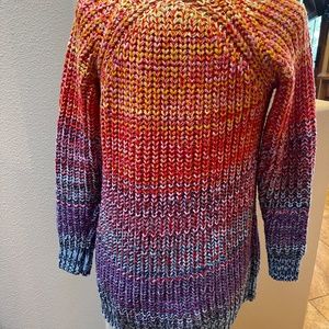 525 America Rainbow Marl sweater, size XS, NWT. This boyfriend cardigan sweater is super soft and comfy, and features a gorgeous sunset gradient ombre pattern. This chunky cardigan is perfect for summer evenings or fall days!