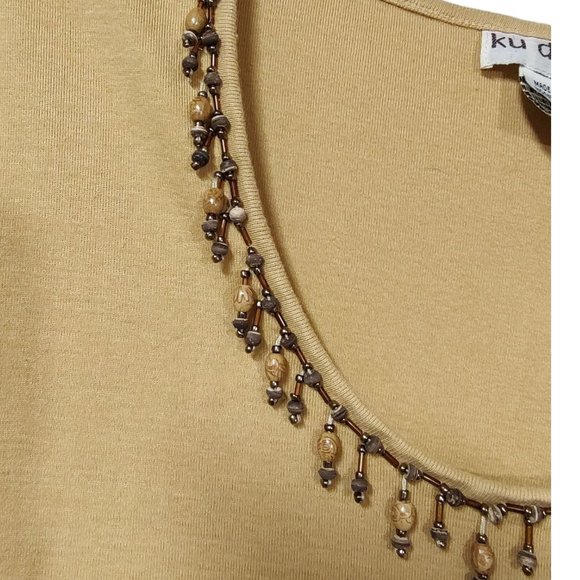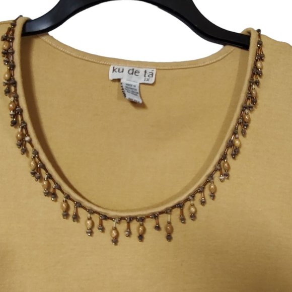 Ku de ta Women's Size 1X Tank Top Beaded Neckline Mustard Yellow