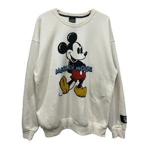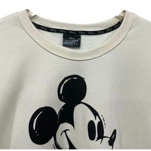 Disney Mickey Mouse Crewneck Sweatshirt Size XL NWT Fleece Lining Creme Ivory