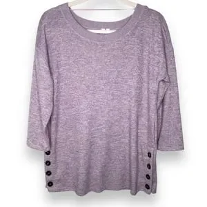 Once you put on this sweater shirt, you will be wearing it every day! It is so soft, has 3/4 sleeves, and buttons detailing on the side of the shirt near the waistline.