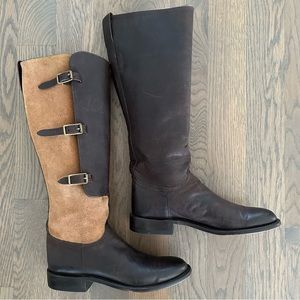 Kemosabe + Lucchese Tall Buckle Leather Equestrian Riding Boot Brown & Tan 9M