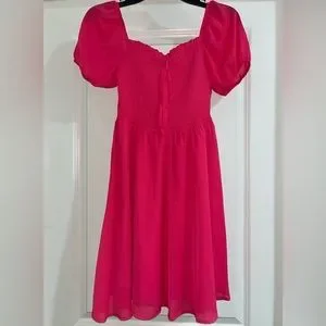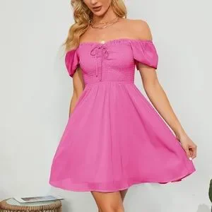 Byinns Women's Sweetheart Neckline, Smocked, Puff Short Sleeve Drawstring Dress