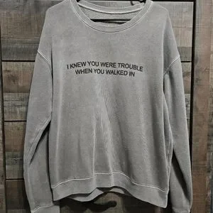 "I Knew You Were Trouble" on the front.