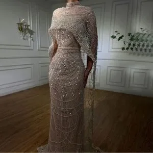 DUBAI Inspired Luxury NWT Pearl Nude Dress