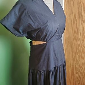 OAK + FORT | Black Tiered Cut-Out 100% Cotton Midi Dress (Size M)