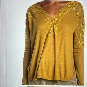 NWOT - Free People Lola Long Sleeve Mustard Colored Top Size XS P2P: 28