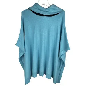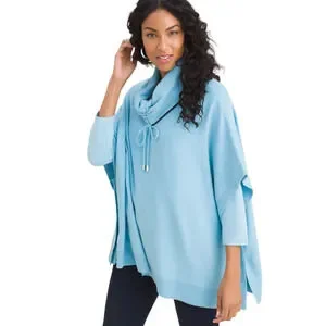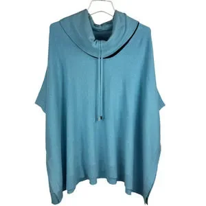Chico's Cotton Cashmere Cinch Cowl Poncho Pullover Size S/M Blue Black
