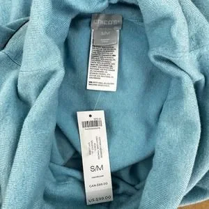 This Chico's poncho pullover in size S/M is a must-have addition to your wardrobe. With a cowl neck and raglan sleeves, it gives a classic and relaxed look. The soft and lightweight fabric is perfect for winter, fall, and spring. The blue color adds a touch of elegance to your outfit. Machine washable for easy care. See pictures for accents.