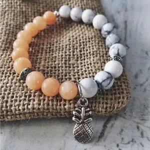 Howlite & Peach Jade Natural Stone Pineapple Beaded Bracelet