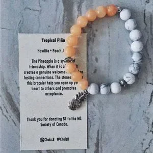 Meaning: "The Pineapple is a symbol of friendship. When it is offered, it creates a genuine welcome that makes lasting connections. The stones used in this bracelet help you open up your heart to others and promotes acceptance. "