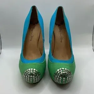 Penny Loves Kenny High Heels Stilettos Pumps Shoes Green Blue Womens 7.5 M