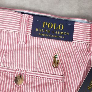 Polo Ralph Lauren Shorts Mens 40 Pink Striped Seersucker 9" Classic-Fit Preppy